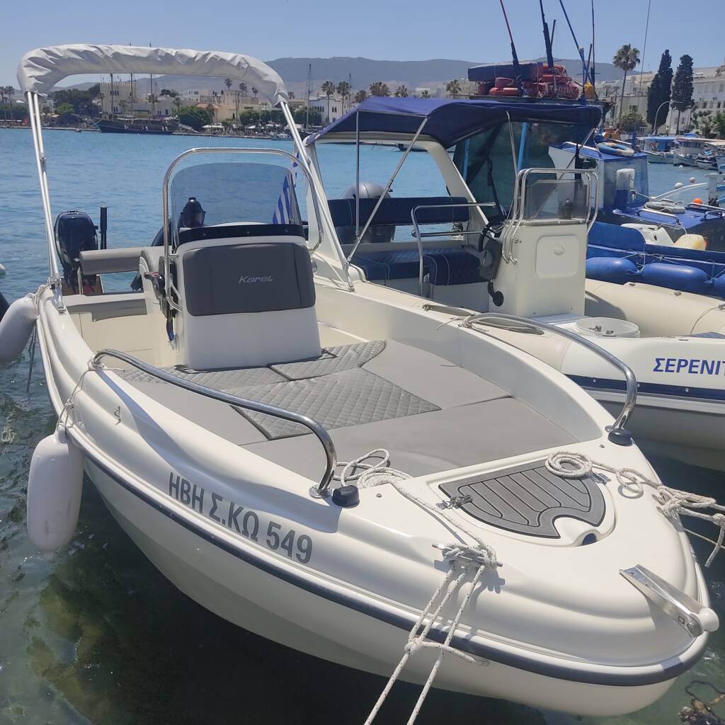 480 Open XS is a brand new, modern boat, whose ergonomic design offers you a comfortable and safe trip. You can rent it with or without a skipper, and having a license or not. It includes sunbeds, a table, hidden storage spaces, a sun tent and a stereo system. Upon request, we can offer you snorkeling equipment (subject to availability), free of charge!